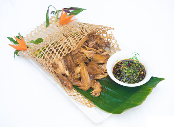 傣族傳統(tǒng)家常風(fēng)味菜,特點(diǎn)是軟嫩鮮甜,原汁原味。制法是將鮮魚(yú)去鰓和內(nèi)臟,洗凈,將蔥花、姜末、蒜末、青椒末、青姜葉末、芫荽末、野花椒葉末、薄荷、茴香葉末、香茅草葉末、草果粉、味精、鹽、料酒拌制成餡,裝入魚(yú)腹,頭尾折攏,再用香茅草捆成十字,外面包以芭蕉葉,埋入木柴燒后的炭或熱灰中燒熟,取出去掉芭蕉葉和香茅草,裝盤(pán)即成。