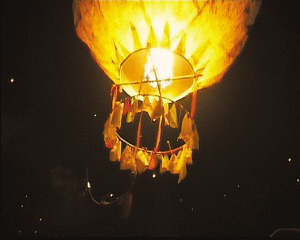 燃放“貢菲”,需要多人幫忙。首先要用火把點(diǎn)燃牛油等制成的燃料,讓孔明燈內(nèi)充滿熱氣,等到它直立向上沖的時候,大家一齊放手,孔明燈就飛向高空。隨著燈底圓口處的明火繼續(xù)燃燒,孔明燈越飛越高,燈內(nèi)攜帶的鞭炮不時發(fā)出噼噼啪啪的響聲,仿佛在祝福傣鄉(xiāng)人民吉祥如意、幸福安康。