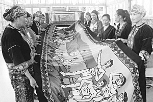 歷時一年時間織造,長186.7米黎族民俗風情長卷織錦壁掛《錦繡黎家》,日前喜獲上海大世界基尼斯世界紀...