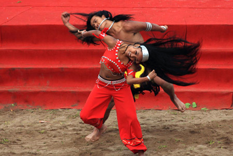 甩發(fā)舞:是廣泛流傳在佤族婦女中的一種舞蹈?!端Πl(fā)舞》的產(chǎn)生年代很久,是屬佤族祖?zhèn)鳌X糇鍕D女酷愛長發(fā),以長發(fā)為美,并從小習慣長發(fā)披肩。每當婦女在水竹槽下用水洗凈頭發(fā)后,就要低頭梳妝,甩發(fā)晾干、整型,后經(jīng)人們整理提高而成為《甩發(fā)舞》。