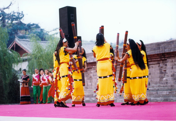 打擊樂:有象腳鼓、竹筒鼓、銅鼓、鑼、芒、镲、木鼓。舊時(shí),木鼓不是樂器,而是人與神之間求應(yīng)的媒介,是佤族最崇拜的神物?,F(xiàn)在,木鼓已被作為文娛活動(dòng)的打擊樂器。西盟縣木鼓舞獨(dú)具特色,國內(nèi)外聞名。