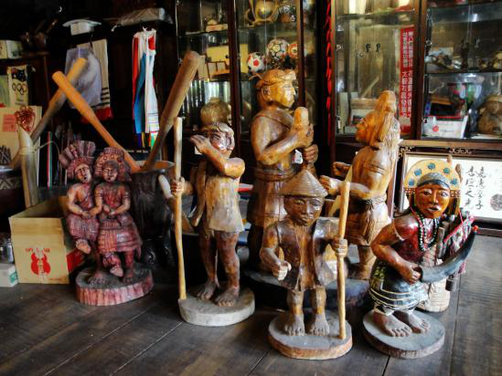 雕刻。高山族的雕刻以木雕和石雕為主,金屬雕刻是現(xiàn)代才出現(xiàn)的。排灣和魯凱兩個(gè)族群的雕刻工藝最為發(fā)達(dá),也最具特色。木板雕刻的紋樣與石壁雕刻大致相似,只是木板雕刻多施色彩,少則紅、白兩種色,多則加上黃、橙、藍(lán)、綠色不等,鮮艷亮麗,引人注目。一般住屋內(nèi)外都有雕刻,貴族的住屋裝飾尤其突出。立柱和壁板雕刻的主題多為敘述家族神話、傳說(shuō)起源或表彰家族的特殊事跡。雕刻的題材以神話傳說(shuō)、狩獵生活、祖靈像為主;木雕以人像、人頭、蛇紋、野豬和鹿紋為主;其他還有重圓紋、太陽(yáng)紋、網(wǎng)形、風(fēng)車形,四葉形、人體生殖器等等。這些題材與排灣人的原始宗教、神話內(nèi)容有密切的關(guān)聯(lián)。住屋的木雕取材于質(zhì)地堅(jiān)硬的樟木、臺(tái)灣櫸、二葉松等喬木,而木桶、木臼、木椅等器物,除了堅(jiān)硬木材外,也選擇樟木,烏心石等。至于木匙、煙斗、木梳則喜歡用月橘之類的材質(zhì)。