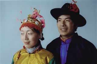 1938年以后,由于青海軍閥馬步芳強(qiáng)行改變土族服飾,這種頭飾便失傳了。如今已婚婦女將頭發(fā)縮成髻,頭戴黑紗巾。耳戴銀制耳環(huán)和各種穗子精制的耳墜。在穿著打扮方面老年女性與中年女性基本上一樣,只是有花色與素色區(qū)別,其中戴銀耳環(huán)者以壯年婦女居多。