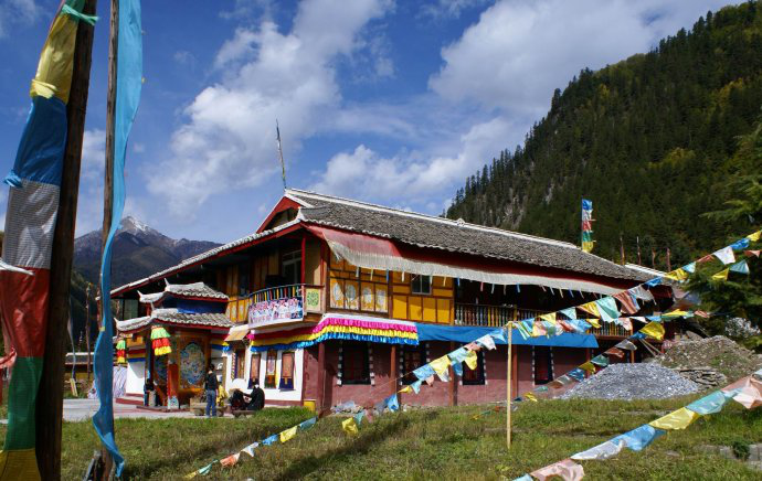 九寨溝里九個古老的藏族村寨,到處有石磨房、棧道、經(jīng)幡和藏羌歌舞等,藏族特色濃郁而神秘。原始古樸的村寨散落在綠樹環(huán)抱的群山之中,顯得更加古老、寧靜。九寨溝,平均海拔在2500米左右,屬于寒溫帶地區(qū),所以冬無嚴(yán)寒,夏無酷暑,在這里的傳統(tǒng)的建筑大都為木結(jié)構(gòu)。