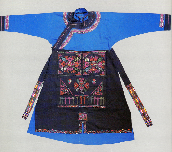 羌族婦女與男子衣服最大的不同之處是領邊、袖口、腰帶和鞋子上常挑繡有幾何花紋圖案,衣領上鑲有一排小的梅花形圖案銀飾。挑繡的圖案多反映現(xiàn)實生活中的自然景象,如植物中的牡丹、梅花,動物中的喜鵲、蝴蝶、羊等。所挑繡之景物,無不栩栩如生,內容多含吉祥如意和對幸福生活的憧憬和渴望。