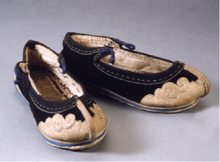 一般來說,一套傳統(tǒng)羌族服飾包括長衫、坎肩、褲子、腰帶、圍腰、裹肚、帽子、鞋子等。一件羊皮坎肩需要兩張羊皮,制作時將羊皮浸泡在草木灰中發(fā)酵,用木銼子除去腐肉、油污,直至羊皮光滑后再縫制。羊皮坎肩四季均可穿,有“羊皮褂子兩面穿,天晴下雨不離肩”的俗語??布鐭o領、無袖、無扣,四周露出羊毛,晴天毛向內穿,雨天毛向外穿,可作墊背,負重等,也可防寒、避雨;圍腰屬于婦女特有,有半襟和滿襟兩種,多用深藍色或黑色布料。半襟圍腰略成長方形,長約70厘米、寬約60厘米,圖案完全對稱。圍腰上的包袋是重點裝飾部分。滿襟圍腰上窄下寬,呈“凸”字型,一般長為90厘米、底寬74厘米、胸寬20厘米,袋包多為一個大包或兩個相連的小包,位于圍腰中心,圍腰上布滿各種圖案,有團花、火盆花、升子印、窗子格、燈籠須。這些復雜繁多、結構巧妙的羌繡工藝,具有濃厚的羌族特色;羌族有草鞋這種日常鞋子,也有“云云鞋”。云云鞋的鞋尖微翹,貌似小船,鞋底較厚,以各色布包邊,用麻線密納,增強了鞋子的耐磨性。鞋幫繡有各形的彩色云紋,水波或杜鵑花紋式樣,故名“云云鞋”,也稱“花鞋”。羌族姑娘常將自己親手制作的花鞋送給小伙子,當作定情信物。現(xiàn)在,羌族人將云云鞋當作節(jié)日的盛裝,只有在重大節(jié)日時才穿。