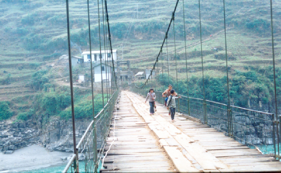 怒江大峽谷及其兩岸的碧羅雪山和高黎貢山層巒疊嶂,危巖聳立,懸崖陡峭。谷中水流湍急,洶涌澎湃。自古以來,這里的交通就十分不便,正所謂“巖羊無路走,猴子也發(fā)愁”。整個(gè)怒江只有幾處水勢稍緩的渡口可以用木船擺渡,除此而外,其它地方既無法架橋,又不能涉渡。兩岸的怒族人民只有依靠溜索這種古老的渡江工具往來飛渡,保持著彼此間的交往與聯(lián)系。