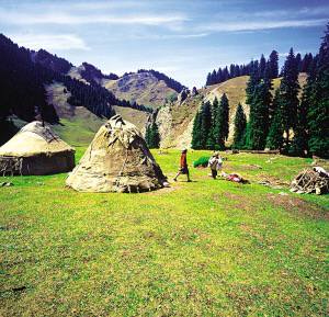 新疆維吾爾自治區(qū)木壘縣大南溝牧場上的氈房