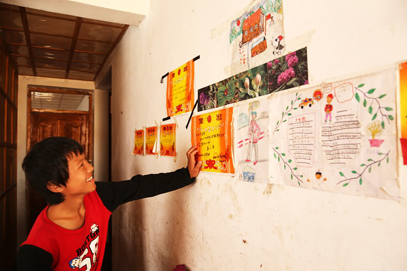 13歲的龍初杰是貢山縣一中初一學(xué)生,弟弟初濤在獨(dú)龍江鄉(xiāng)中心小學(xué)讀五年級,小弟弟初夏上村小三年級。趁著放假,兄弟三人都回到了龍元村的新家中。