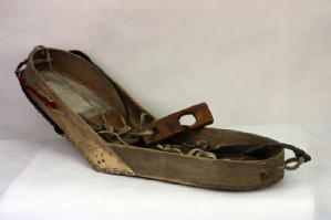 搖籃是鄂倫春族的傳統(tǒng)育嬰工具(如圖,吳雅芝供圖)。游獵時(shí)期居無(wú)定所,騎馬游動(dòng)的時(shí)候母親把搖籃背在背上,孩子餓了,只需把搖籃轉(zhuǎn)到胸前就可以喂奶,不必下馬。有人在搖籃頭頂部位掛三個(gè)束紅腰帶的黑布小人,作為孩子的護(hù)身符,據(jù)說(shuō)能保佑孩子健康成長(zhǎng)。也有人在搖籃頭部?jī)蓚?cè)掛木刻的小老鼠和小鳥,預(yù)示孩子像小老鼠一樣伶俐機(jī)智,像小鳥一樣展翅飛翔。