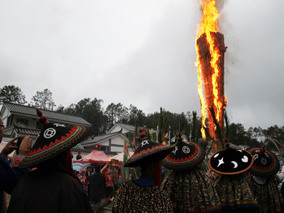 圖為楚雄市板凳山舉辦原生態(tài)火把節(jié)