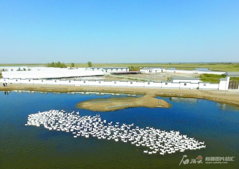 于田縣斯也克鄉(xiāng)稻田養(yǎng)鵝基地(10月14日攝)。該鄉(xiāng)和天山牧歌投資管理有限公司共同投資發(fā)展鵝產(chǎn)業(yè),帶動(dòng)...
