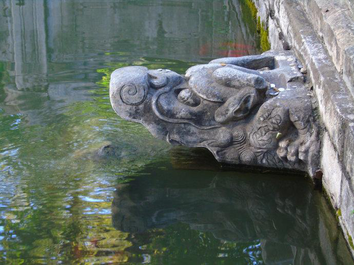 螭首是古代建筑石作制度中的主角之一,有平衡臺基望柱的重力和排水的功能,同時也是建筑上的裝飾構(gòu)件,是標志著封建禮制建筑等級的象征,是實用與裝飾的完美結(jié)合的建筑裝飾小品。節(jié)奏和韻律是中國古建筑的重要特點。