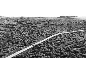 回看村史,根登帶領(lǐng)牧民人工種草、沙漠造林的場景似乎歷歷在目,治沙確實太難了,常常是事倍功半,一場沙塵暴把新栽的灌木連根拔走。后來他們也漸漸摸出門道,從沙丘的低處由下往上治理,形成圍攻之勢,這樣治沙成果就保住了。到20世紀60年代中期,烏蘭敖都村莊附近基本被固沙灌木覆蓋,牲畜飼養(yǎng)量也由最初入社時的200多頭(只)發(fā)展到5000多頭(只)。除栽種固沙灌木外,烏蘭敖都還栽植白楊樹、棗樹、葡萄樹和蘋果樹,搞多種經(jīng)營。后來又逐步引進飛播、網(wǎng)格治沙等先進技術(shù),綠色發(fā)展的步伐逐年提速。