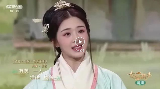 在央視《古韻新聲》節(jié)目中,一曲《詩經(jīng)·鄭風(fēng)·野有蔓草》再現(xiàn)2500多年前先秦清甜宜人的春日邂逅,獲得網(wǎng)友熱評(píng)。(視頻來源:央視新聞微信公眾號(hào))