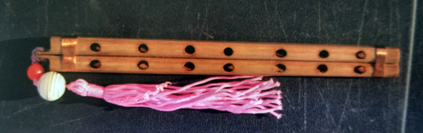 羌笛是一種吹管樂器,歷史悠久。羌笛至今已有兩千余年歷史。據(jù)史載,西漢前,羌笛面上有四孔,公元一世紀(jì)由京房加一高音按孔,為五孔。東漢馬融在《長笛賦》就曾有“近世雙笛從羌起”的記述,唐代亦有“羌笛何須怨楊柳”的名句。發(fā)展到近代羌笛已成六孔。2006年5月“羌笛演奏及制作技藝”被列入《第一批國家級非物質(zhì)文化遺產(chǎn)目錄》。羌笛在羌語中稱為“其篥”“士布里”或是“幫”,是一種古老的民間豎吹樂器。它由兩根長約15—20厘米,直徑1厘米左右,筒孔大小一致的竹管并在一起,用絲線纏繞,管頭插著竹簧。管身竹制或骨制,由發(fā)音簧哨和方筒形管體組成。兩管長短、孔距和音高相同。管上設(shè)五個(gè)或六個(gè)按孔。演奏時(shí),雙手持笛,將簧哨含入口內(nèi),用特殊的“鼓腮換氣法”吹奏,指法與笛相同。制作羌笛一般選用箭竹,并根據(jù)筒管的長短、厚薄及筒管大小測定音準(zhǔn),孔距必須精確相等,否則音準(zhǔn)不一。