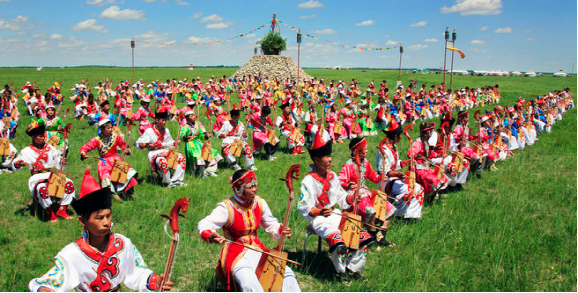 在郭爾羅斯,早期的馬頭琴主要擔(dān)當(dāng)史詩說唱及民歌的伴奏,一首民歌就是一支馬頭琴曲,人聲起便可琴聲合, 尤其是同蒙古民族的“烏爾圖道”(即長調(diào)民歌)相結(jié)合,更具草原文化的韻味。