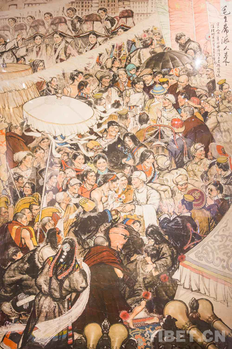 鑒賞展現(xiàn)場(chǎng),不少前來參觀的畫家都是韓書力的學(xué)生或在一定時(shí)期曾受其教導(dǎo)。“1973年,我在西藏自治區(qū)展覽館見到了韓書力老師,第一次見面我就拜了師。我們一起下鄉(xiāng),我就給他當(dāng)導(dǎo)游和翻譯。30幾年來,我一直在學(xué)習(xí)韓老師的繪畫技法,到現(xiàn)在還是他的學(xué)生。韓老師創(chuàng)作《毛主席派人來》時(shí),我就跟在旁邊學(xué)習(xí)。學(xué)到了一些創(chuàng)作獨(dú)幅作品的技巧和手法,讓我受用至今。”西藏青年畫家計(jì)美赤列說。