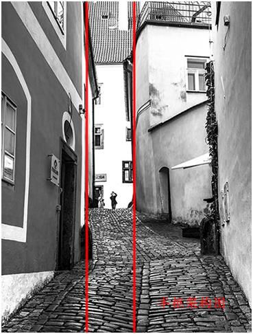 我們看到下面這張圖也是以對角線的構(gòu)圖形式,只不過這個對角線從畫面中明顯的看不出它是一個對角線,而是畫面中一些重要元素形成的一個對角線趨勢,我們暫且把它稱之為暗對角線。