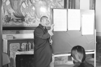 此次展覽將持續(xù)至2020年1月。為了讓觀眾更加直觀地了解唐卡藝術(shù),10月20日,主辦方在中國(guó)藏語(yǔ)系高級(jí)佛學(xué)院舉辦了繪畫唐卡體驗(yàn)活動(dòng)。