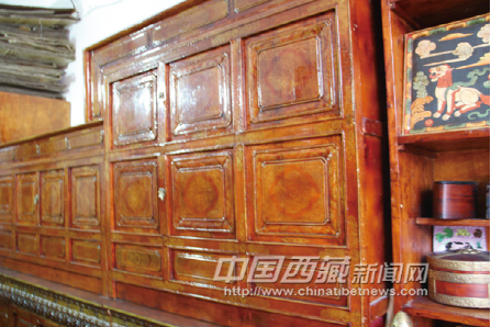 但由于西藏特定的地域分布規(guī)律的限制,森林主要分布于西藏東南部以及喜馬拉雅山南坡的濕潤(rùn)地區(qū),高原內(nèi)部缺少木材,交通運(yùn)輸?shù)睦щy,過去經(jīng)濟(jì)落后時(shí),只有高層僧侶、貴族或上層人士才用得起精美的藏式家具。所以在藏族家庭中,如果有一套精美的藏桌、藏柜和酥油茶桶,主人則引以為榮。藏式家具成為財(cái)富的象征,家具數(shù)代相傳。傳統(tǒng)精美的藏式家具進(jìn)入尋常百姓家庭,只是近幾十年間的事。