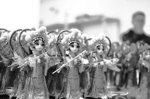 據(jù)貴州盛華職業(yè)學院唐人坊非物質(zhì)文化遺產(chǎn)傳承學院副院長秦貞錚介紹,“唐娃娃”全都是手工制作,十分復(fù)雜,完成一個娃娃可能要經(jīng)過上百道工序?!啊仆尥蕖母叨入m然只有30厘米,但這些人物穿的衣服幾乎是京劇劇裝的原樣縮小版。它們的妝容都是手畫的,頭發(fā)也是手工盤上去的,帽子采用傳統(tǒng)掐絲工藝?!?/p>