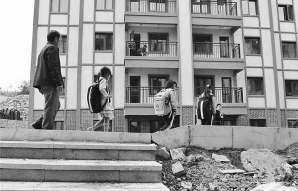 教師楊紹書(shū)和學(xué)生從新居前走過(guò)。歐東衢攝