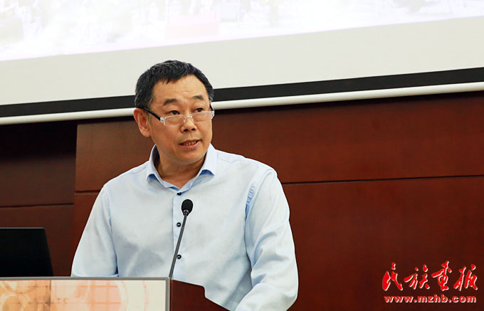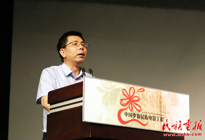 中國少數(shù)民族電影工程領(lǐng)導(dǎo)小組辦公室副主任、宣傳推廣部主任,中國民族影視研究中心主任牛頌主持研討會
