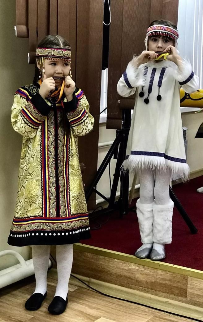 兩個(gè)小女孩在表演那乃族舞蹈