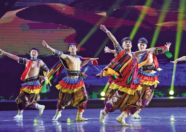 在第11屆中國(guó)舞蹈“荷花獎(jiǎng)”評(píng)選中,13位身著蒙古袍、顫顫巍巍的“爺爺”拄著拐杖奪得金獎(jiǎng)。“爺爺”手中的拐杖時(shí)而變成自拍桿,時(shí)而又變成馬頭琴,風(fēng)趣靈動(dòng)的蒙古舞與流行樂(lè)混搭得異常和諧,呼和浩特民族演藝集團(tuán)編創(chuàng)的舞蹈《爺爺們》如同不一樣的煙火,在二十一世紀(jì)的蒙古舞星空炸裂出別樣的絢爛。2019年,內(nèi)蒙古舞蹈迎來(lái)高光時(shí)刻,民族舞劇《草原英雄小姐妹》斬獲文華大獎(jiǎng),填補(bǔ)了內(nèi)蒙古在文華獎(jiǎng)?lì)I(lǐng)域的空白;由鄂爾多斯民族歌舞劇院編創(chuàng)的舞蹈作品《黑緞子坎肩》捧回第12屆中國(guó)舞蹈“荷花獎(jiǎng)”小金人。在似錦繁華迷人眼的舞壇,蒙古舞憑借勃發(fā)的民族生命力和強(qiáng)大的藝術(shù)感染力獨(dú)領(lǐng)風(fēng)騷。