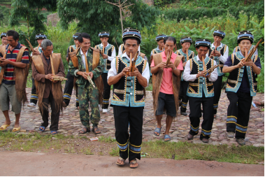傳承在德安鄉(xiāng)葫蘆笙舞蹈已有上百年的悠久歷史,哈尼族民間傳統(tǒng)節(jié)日、娶親嫁女,生兒育女、喬遷新居等時節(jié)、都要舉行傳統(tǒng)的跳笙活動,一跳就是一個通宵。而且各個寨子里老幼都會跳笙,因此傳承較為廣泛。它不僅保留有傳統(tǒng)的娛樂活動,也保留著大量的生活勞動歌舞。從葫蘆笙舞中我們可以找到當(dāng)?shù)厝嗣袢罕姷膫鹘y(tǒng)文化習(xí)俗、生產(chǎn)生活習(xí)俗和節(jié)日習(xí)俗的演變及發(fā)展。葫蘆笙舞蹈無論在內(nèi)容上還是在形式上均有模式性、群體性和變異性等民俗文化的特點(diǎn)。把一些自然形態(tài)的舞蹈逐漸整理規(guī)范為相對穩(wěn)定的組合套路,也真實(shí)記錄下了當(dāng)?shù)厝嗣裆a(chǎn)方式發(fā)展變化的軌跡?,F(xiàn)在,僅德安鄉(xiāng)蘭慶村共有葫蘆笙傳承成員一百多人。其中,男96人、女10人、少兒10人,平均年齡約40歲左右。