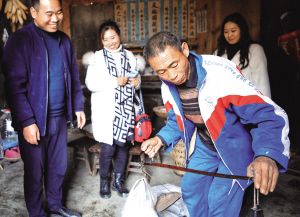 在村里修復(fù)舊屋的趙貢彩接到游客電話,馬不停蹄地趕回家中,自家手工制作的苕粉成了游客心心念念的香餑餑。拿出早已生銹的秤桿,一袋袋苕粉被游客搶著購(gòu)買(mǎi)?!岸际橇糁约页缘?,哪想著能賣(mài)出去喲?!毙χf(shuō)罷,趙貢彩拿出手機(jī),微信一掃,錢(qián)款立即到賬。