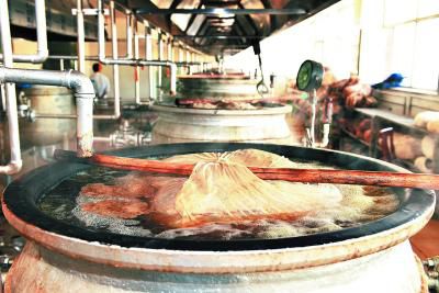 該遺產(chǎn)項(xiàng)目代表性傳承人明珠(左)指導(dǎo)瀧沐覺堪(制藥師)煎熬“五味甘露”。關(guān)確才讓 攝