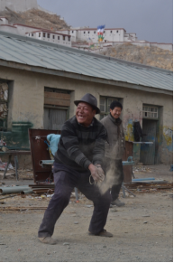 江孜這家工廠叫“鐵木家具廠”。廠長(zhǎng)正在與員工一起沉浸于“打石頭”游戲帶來(lái)的快樂之中。廠長(zhǎng)告訴記者:“如今,在江孜,以及西藏其他城市里,基本上看不到還有人玩這種游戲。只有鄉(xiāng)下在逢年過節(jié)的時(shí)候,人們才會(huì)玩這種游戲。而鐵木家具廠的工人之所以還玩‘打石頭’,是因?yàn)檫@項(xiàng)游戲是廠里保持了30多年的傳統(tǒng)。”