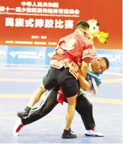 ?、咴颇详?duì)選手在陀螺男子團(tuán)體賽中郭浩攝