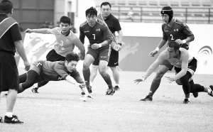 “穩(wěn)住,穩(wěn)住,看準了再發(fā)力!”河北隊蹴球教練張宏磊在場邊不斷給隊員鼓勁兒。