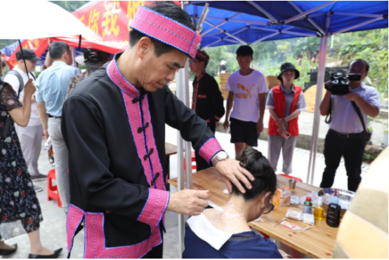 本次活動以2020年“文化和自然遺產(chǎn)日”的“非遺傳承,健康生活”為主題,重點(diǎn)圍繞傳統(tǒng)醫(yī)藥項目保護(hù),普及“非遺”知識和健康生活理念,營造全社會共同參與、關(guān)注和保護(hù)傳承優(yōu)秀傳統(tǒng)文化濃厚氛圍而開展。邀請十位瑤醫(yī)藥傳承人帶領(lǐng)40多位瑤醫(yī)弟子各顯神通,在現(xiàn)場開展非遺項目義診活動,為游客免費(fèi)問疹,展示泡藥療法、針灸療法、燈草療法、坐浴療法、拉伽通灸療法等10種技法?,幷锩恳粦羧思夷贸瞿檬纸^活在自家進(jìn)行現(xiàn)場展示,黃泥鼓制作、樹葉豆腐制作、瑤族織繡技藝、釀酒技藝、舂糍粑、原創(chuàng)歌曲展示等,豐富多彩的各種技藝,讓游客流連忘返。