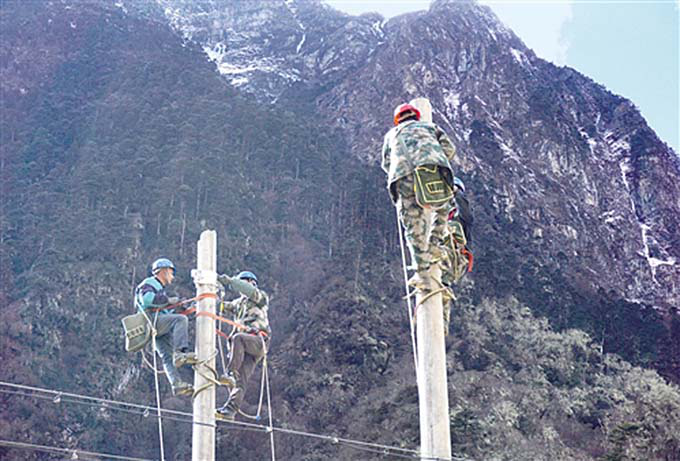 2018年初,隆子縣玉麥鄉(xiāng)電力線路全線貫通,9戶32位群眾將用上國家電網源源不斷的電能。圖為工人在玉麥鄉(xiāng)境內施工(和訊新聞)