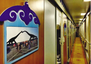 經(jīng)過全新整改后的列車,秉承“天地精華,大美麗江”主題,把納西族、白族等麗江少數(shù)民族代表性文化元素融入列車整體外裝和窗簾、地毯、臺布等內(nèi)部裝飾。小到窗簾紋飾,大到每一幅裝飾畫,都經(jīng)過了精挑細(xì)選,滲透了麗江文化,通過一車一景、一車一館的方式,把車廂打造成展示麗江各地優(yōu)美自然風(fēng)光和絢麗民族文化的長廊。