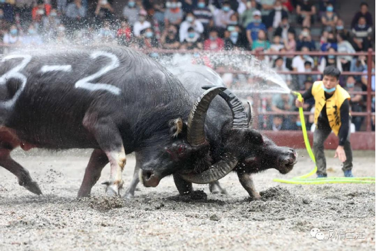 ·2020年5月1日,廣西三江侗族自治縣在縣城侗鄉(xiāng)鳥巢舉行中國侗族“月也”牛王節(jié)活動,以祈福游行、牛王爭霸賽等形式盡展侗鄉(xiāng)風情,14頭牛王輪番登場激戰(zhàn),讓觀眾大呼過癮。今年五一,三江在精心豐富文化旅游業(yè)態(tài)的同時,全力加強客流管控,嚴防人員聚集,有序引導游客間隔入園、錯鋒旅游,力促疫情防控和文旅復(fù)蘇“兩不誤”,助力侗鄉(xiāng)文化旅游“回暖升溫”。
