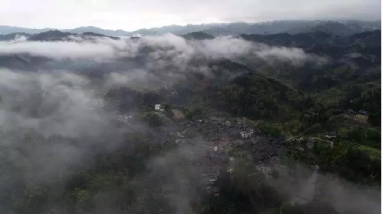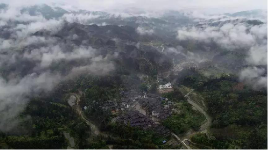4月14日,無人機航拍的三江侗族自治縣洋溪鄉(xiāng)高露村中寨屯美景