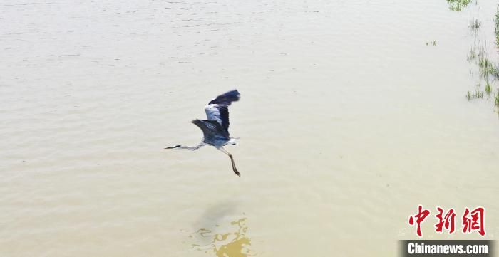 鳥(niǎo)兒在南宮湖濕地公園飛翔?!√锿z