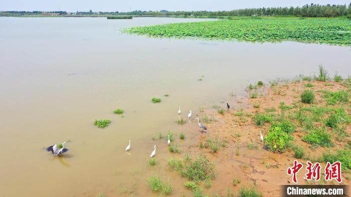 盛夏時(shí)節(jié),雨過(guò)天晴,美麗的南宮湖水波蕩漾,蒼鷺、白鷺、綠頭鴨等鳥(niǎo)類(lèi)在此翔集,棲息覓食。河北省南宮市的南宮湖濕地公園,擁有3000多畝水面和52公里內(nèi)外環(huán)水系,是河北南部依傍縣城最大的人工湖。近年,當(dāng)?shù)貙?shí)施南宮湖水生態(tài)修復(fù)工程,昔日“藏污納垢,蚊蠅亂飛”的舊坑塘成為水清、岸綠、景美的生態(tài)湖、景觀湖。