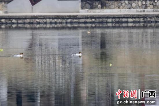 廣西荔浦市荔江流域首次發(fā)現(xiàn)國家一級保護動物:中華秋沙鴨。張德林 攝