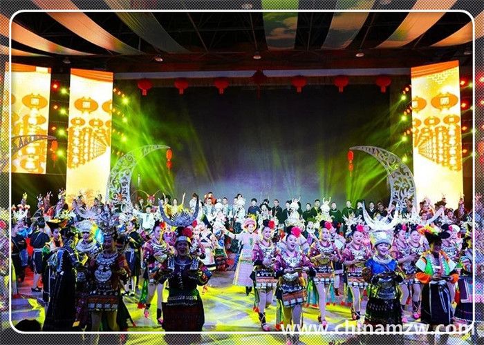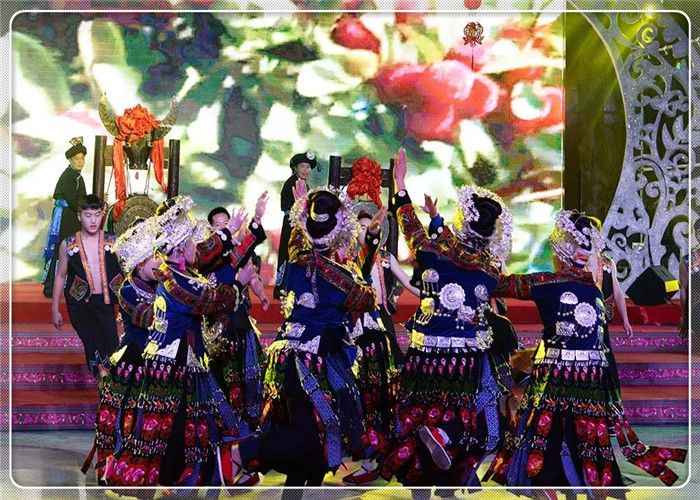 中國苗族網(wǎng)訊 2019年1月19日,由貴州省社科聯(lián)、貴州民族大學(xué)指導(dǎo),貴州省苗學(xué)會(huì)主辦,貴陽市苗學(xué)會(huì)、六盤水市苗學(xué)會(huì)、安順市苗學(xué)會(huì)、畢節(jié)市苗學(xué)會(huì)、銅仁市苗學(xué)會(huì)、黔西南州苗學(xué)會(huì)、黔東南州苗學(xué)會(huì)、黔南州苗學(xué)會(huì)、貴安新區(qū)苗學(xué)會(huì)、多彩貴州城建設(shè)經(jīng)營(yíng)有限公司共同協(xié)辦的“迎新春-蝶韻楓彩鼓聲來”2019春節(jié)聯(lián)歡晚會(huì),在貴州省貴陽市“多彩貴州城”展示中心隆重舉辦。貴州省9個(gè)州市及貴安新區(qū)苗族、布依族、侗族、土家族、彝族、仡佬族、水族、回族、白族、瑤族、壯族、毛南族、蒙古族、仫佬族、羌族、滿族等17個(gè)少數(shù)民族載歌載舞歌盛世,歡天喜地迎新春。 應(yīng)邀出席春晚的領(lǐng)導(dǎo)嘉賓有貴州省人大常委會(huì)原副主任、省苗學(xué)會(huì)老會(huì)長(zhǎng)楊光林,以及貴州省人大常委會(huì),貴州省社科聯(lián),貴州省民政廳,貴州省政協(xié),貴州民大,貴州省政協(xié),貴州省文化和旅游廳,貴州省總工會(huì),貴州省文聯(lián)、貴州省人大、省委宣傳部、省民政廳,民宗委,社科聯(lián),貴州省八大民族學(xué)會(huì)的相關(guān)領(lǐng)導(dǎo)等應(yīng)邀出席并觀看演出。 春晚得到了貴州省委宣傳部領(lǐng)導(dǎo)關(guān)心,省委常委、省委宣傳部慕德貴部長(zhǎng)對(duì)晚會(huì)專門作出重要批示,要求把春晚打造成一臺(tái)“思想性、藝術(shù)性、觀賞性統(tǒng)一的文藝晚會(huì),豐富春節(jié)期間群眾性精神文化生活,營(yíng)造歡樂、喜慶、團(tuán)結(jié)、祥和的節(jié)日氛圍”。 晚會(huì)緊扣“同心共筑中國夢(mèng),中華民族一家親”主題,圍繞共同團(tuán)結(jié)奮斗、共同繁榮發(fā)展主題,繼承和弘揚(yáng)中華民族優(yōu)秀傳統(tǒng)文化,積極展示貴州少數(shù)民族同胞改革開放40周年來翻天覆地的新變化,用少數(shù)民族原生態(tài)歌舞形式歌頌黨、歌頌祖國、歌頌民族大團(tuán)結(jié)。春晚節(jié)目,由貴州省各州市國家非遺保護(hù)節(jié)目、在中央春晚節(jié)目,由貴州省各州市國家非遺保護(hù)節(jié)目、在中央級(jí)、省市級(jí)比賽中獲獎(jiǎng)的各民族原生態(tài)蘆笙舞、錦雞舞、銅鼓舞、板凳舞,苗族飛歌、古歌、大歌、情歌、絕技;民族盛裝走秀;非遺文化展示等26個(gè)節(jié)目組成。 晚會(huì)由240位貴州各地苗族演員,50位苗族、布依族、侗族、仡佬族、彝族、土家族、回族等17個(gè)少數(shù)民族演員,在主持人的開場(chǎng)白介紹中,手持燈花、衣著盛裝在鼓點(diǎn)笙曲中步入會(huì)場(chǎng)。 接著,被國內(nèi)外譽(yù)為“東方迪斯科”的黔東南州臺(tái)江《反排木鼓舞》拉開笙鼓迎春的序幕,雷山國家級(jí)非遺節(jié)目《掌坳銅鼓舞》、《錦雞舞》,貴陽市花溪區(qū)《花鼓舞》、貴安新區(qū)原生態(tài)蘆笙舞《花坡韻》、黔南州《鼓龍鼓虎-長(zhǎng)衫龍》、兒童舞蹈《跺月亮》、畢節(jié)市納雍縣蘆笙舞《滾山珠》、凱里原生態(tài)合唱《春之歌》、安順留守兒童合唱團(tuán)《又見桃花開》、金竹樂隊(duì)蘆笙組合《酒歌》、銅仁市絕技《紙上飛仙》、黔西南州《板凳舞》等,一個(gè)個(gè)節(jié)目精彩絕倫、美輪美奐,舞出少數(shù)民族同胞“美起來、笑起來、富起來、強(qiáng)起來”的精神風(fēng)貌、音容笑貌。最后,貴州省17個(gè)世居少數(shù)民族240名演員齊唱《愛我中華》,在“五十六個(gè)民族五十六朵花,五十六個(gè)兄弟姐妹是一家”的歌聲中把整臺(tái)晚會(huì)推向高潮,拉下帷幕。 此次春晚民族文化濃厚、明星歌手薈萃、演員陣容龐 此次春晚民族文化濃厚、明星歌手薈萃、演員陣容龐大、節(jié)目精彩絕倫。這些節(jié)目,涵蓋了東部方言、中部方言和西部方言各民族支系。遍及黔東南州、黔西南州、黔南州、貴陽市、安順市、畢節(jié)市、六盤水市、銅仁市和貴安新區(qū)。老藝術(shù)家榜香、青年歌手阿幼朵、潘興周、雷艷、楊一方、阿娜丹、歐桑、楊佳茜、楊祖桃、楊思雨、楊廷勇、吳敏成、阿蕾倩、余秋陽、阿依三姐妹、谷阿斯組合、阿依山娃組合等20多名少數(shù)民族歌星紛紛登臺(tái)獻(xiàn)藝,演員達(dá)300余人。 貴州省人大常委會(huì)原副主任、貴州省苗學(xué)會(huì)老會(huì)長(zhǎng)楊光林說,春晚的舉辦,有利于提高民族同胞的戰(zhàn)斗力、凝聚力、感召力!春晚牢牢把握了“百姓富、生態(tài)美”兩條底線,通過晚會(huì)形式,吹響了少數(shù)民族同胞在黨中央和貴州省委、省政府的堅(jiān)強(qiáng)領(lǐng)導(dǎo)下,致力于決戰(zhàn)脫貧攻堅(jiān),決勝同步小康、實(shí)現(xiàn)鄉(xiāng)村振興的號(hào)角。是號(hào)召大家參與國家實(shí)施的“鄉(xiāng)村振興、脫貧攻堅(jiān)”任務(wù),努力實(shí)現(xiàn)貴州人民2020年和全國人民同步實(shí)現(xiàn)小康及全國人民正在努力實(shí)現(xiàn)的“中國夢(mèng)”作出貢獻(xiàn)的動(dòng)員令! 晚會(huì)當(dāng)天,春晚組委會(huì)主任、貴州省苗學(xué)會(huì)常務(wù)副會(huì)長(zhǎng)張榮斌介紹:“迎新春-蝶韻楓彩鼓聲來”2019春節(jié)聯(lián)歡晚會(huì),是推進(jìn)貴州省委、政府明確提出