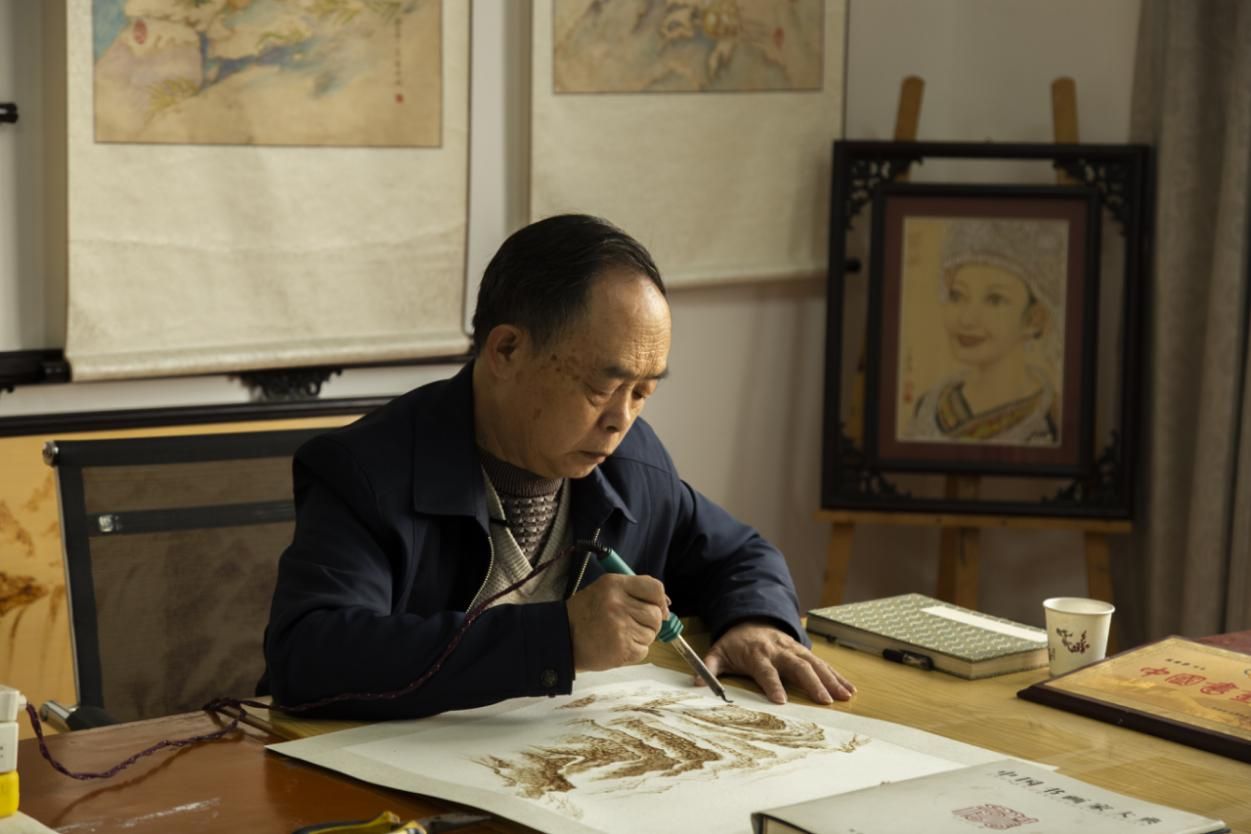 雖然陳國梁在宣紙烙畫上有極大的成就,但作為宣紙烙畫傳承人的他深知烙畫這門藝術(shù)今天面臨的處境。這么多年來他也一直致力于傳播宣紙烙畫和教授徒弟。2016年烙畫非遺傳承進(jìn)入了貴州民族大學(xué),并創(chuàng)建成了烙畫非遺傳承工作室。陳國梁最大的愿望是通過自己的努力讓更多學(xué)生能學(xué)習(xí)到烙畫這門藝術(shù),期望這項(xiàng)有兩千多年歷史的烙畫藝術(shù)能再次發(fā)揚(yáng)光大,期望宣紙烙畫能不斷的創(chuàng)新和傳承下去。