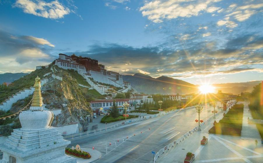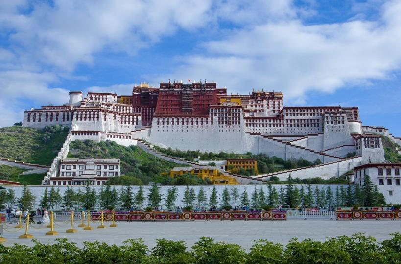 布達(dá)拉宮在西藏拉薩西北的瑪布日山上,是著名的宮堡式建筑群,藏族古建筑藝術(shù)的精華。宮堡依山而建,宮體主樓13層,高115米,全部為石木結(jié)構(gòu),5座宮頂覆蓋鎦金銅瓦,金光燦爛,氣勢(shì)雄偉,是藏族古建筑藝術(shù)的精華。