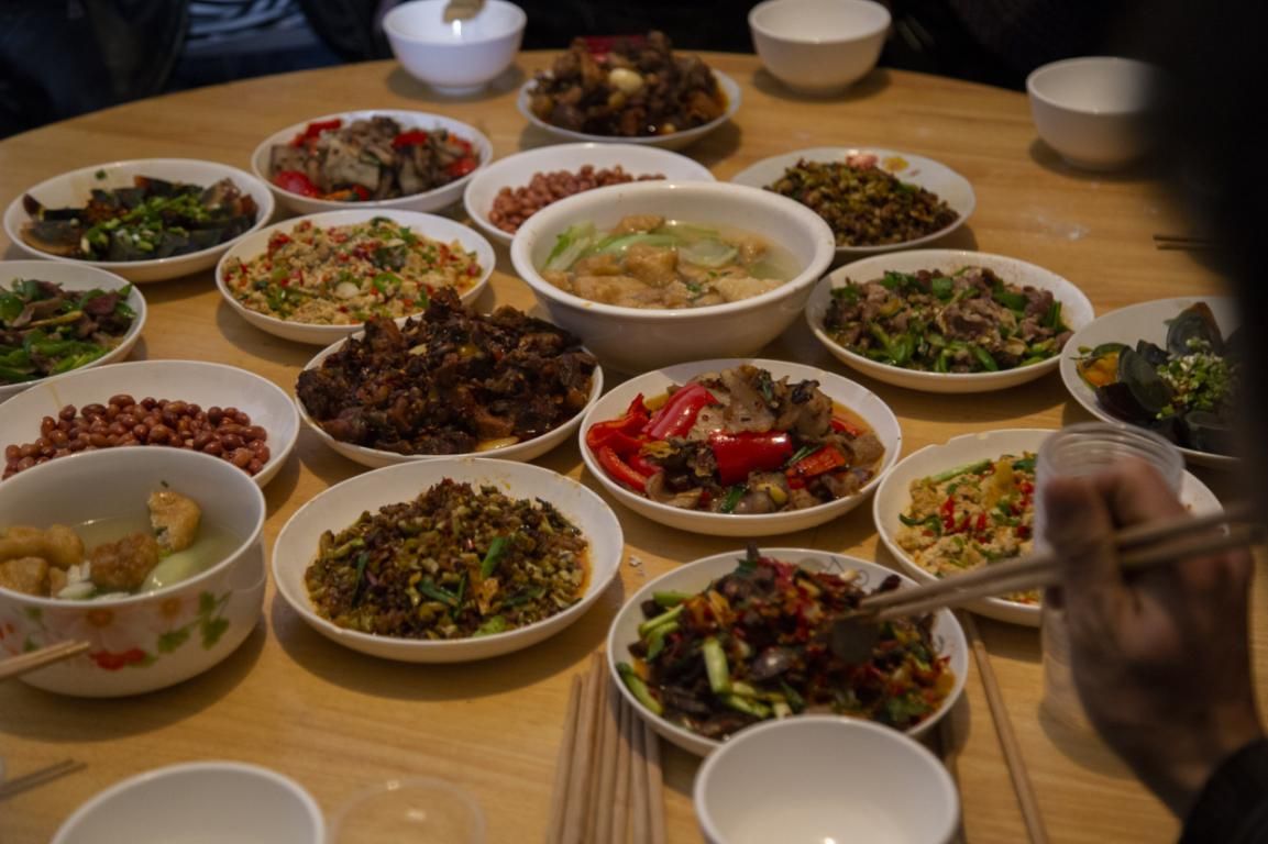 敬灶始,先在堂后做法事后,再端起文書到灶房灶頭做法事,文書燒在灶中。領(lǐng)牲法事有的戴面具,有的不戴面具。領(lǐng)牲都極具戲劇形態(tài),其中有角色對(duì)白,邊唱邊舞,壇場(chǎng)打諢,語(yǔ)言幽默,觀眾喜愛。一般都把洗凈的豬抬進(jìn)中堂,用司刀把豬尾巴割掉,掏出豬腰,請(qǐng)出殺豬匠來(lái)說一些奉承言語(yǔ),燒紙,敬酒。領(lǐng)牲的程序,首先去豬頭,后把三絲肉、合同肉;扎案肉;豬尾巴;豬腰子,頭、蹄腳用來(lái)敬菩薩,五心肝肚也要拿來(lái)敬菩薩。