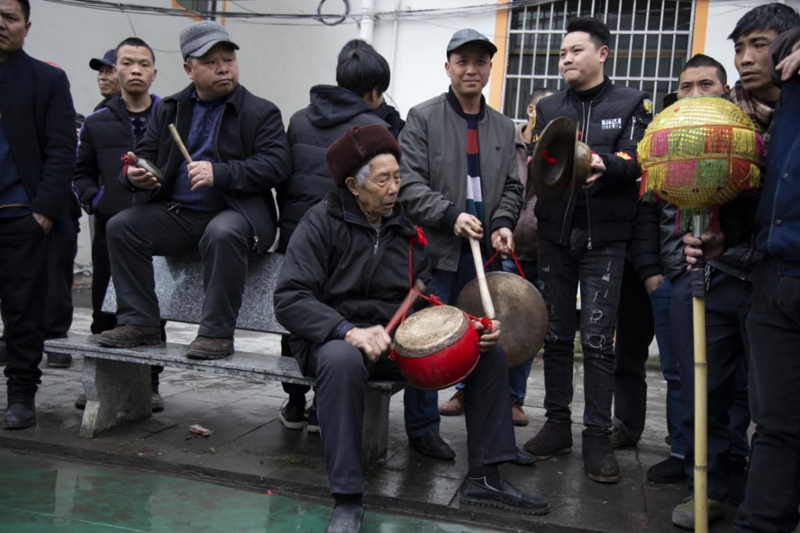 玩龍燈最為講究的是為主人家開財(cái)門,主人家會(huì)把牌燈請(qǐng)入中堂,并把門關(guān)上。就有人在屋內(nèi)盤問玩燈人。