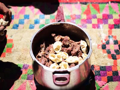 村民烤制的俄羅斯族傳統(tǒng)食品列...